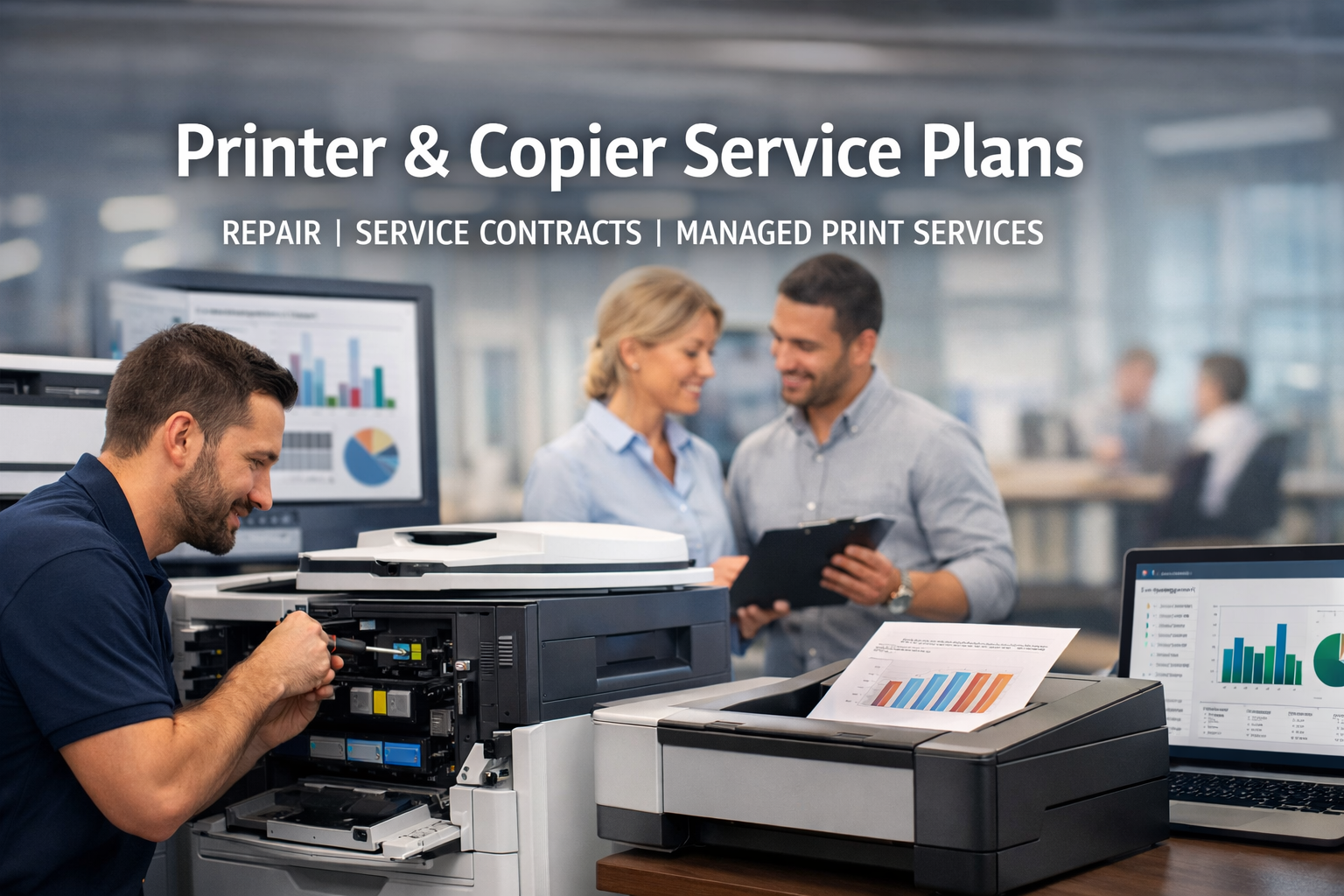 The Complete Printer & Copier Service Plan provides comprehensive coverage for business printers and copiers, combining unlimited labor, covered replacement parts, scheduled preventive maintenance, and managed firmware updates. This plan is designed to reduce breakdowns, improve device stability, enhance security, and keep equipment operating at peak performance.