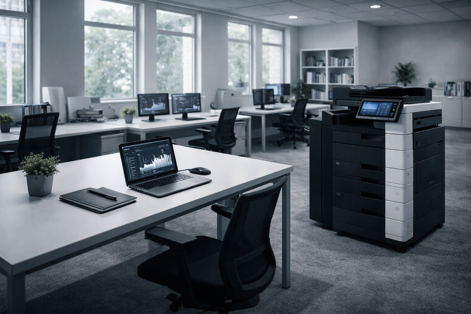 - Installation & onboarding for staff and admins (network setup, drivers, scan-to-email/folder basics)